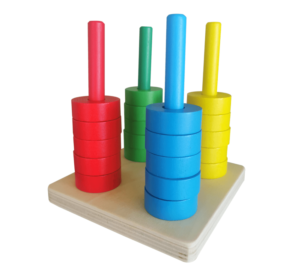 Improves hand-eye coordination, grip strength, and precision through stacking and sorting activities. -