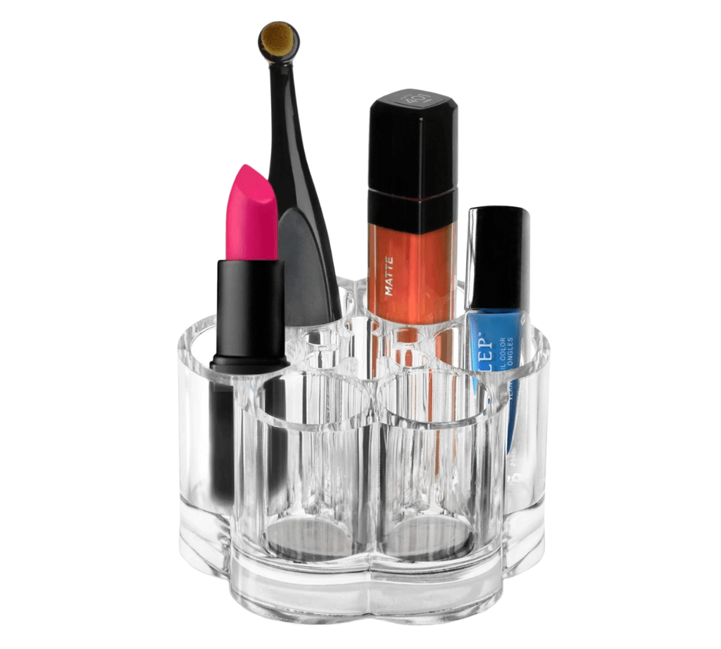 Acrylic Lipstick Organizer – Clear Flower Design Makeup Holder with 7 Slots for Brushes, Nail Polish & Office Supplies