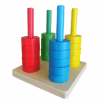4-Column Wooden Geometric Shape Stacking Puzzle – Educational Toy for Babies, Toddlers & Kids