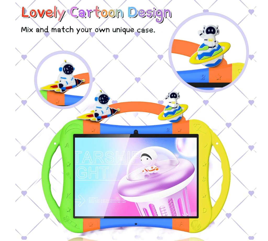• Built-in Stand:- The case has stand function, so kids don’t need to hold the tablet all the time while learning, watching and playing games and both side has two holder for hanging in hand.