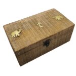 Original price was: AED55.00.AED35.00Current price is: AED35.00.Handcrafted Wooden Storage Box with Camel and Palm Tree Design – Decorative Keepsake Organizer with Brass Latch for Jewelry, Trinkets, and Gifts