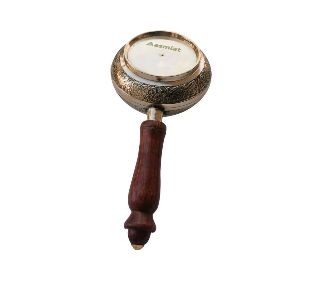Original price was: AED55.00.AED45.00Current price is: AED45.00.Elegant Decorative Brass Incense Burner with Wooden Handle Featuring Intricate Star Pattern Design for Home and Meditation Spaces