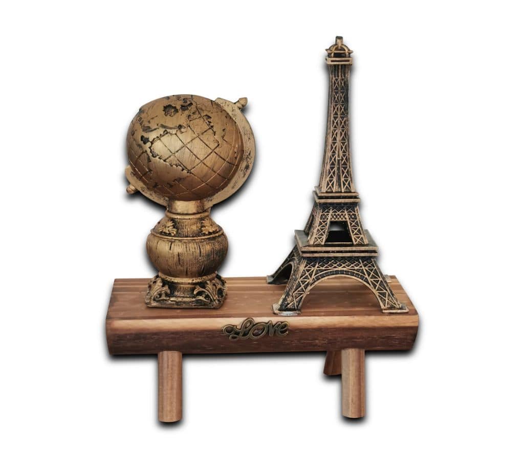 Original price was: AED55.00.AED35.00Current price is: AED35.00.Elegant Vintage World Globe and Eiffel Tower Decorative Display Set – Timeless Wooden Base with Stunning Bronze Finish for Home and Office Décor