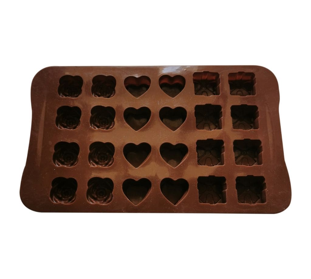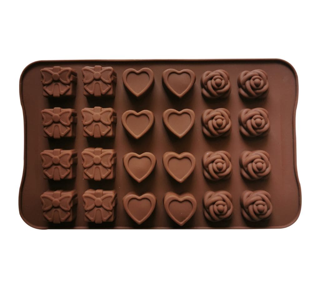 Original price was: AED25.00.AED15.00Current price is: AED15.00.Silicone Chocolate Mould with 24 Cavities Featuring Hearts, Roses, and Bows Designs, Non-Stick Flexible Baking Tray Mold for Chocolates, Candies, and Treats – Brown
